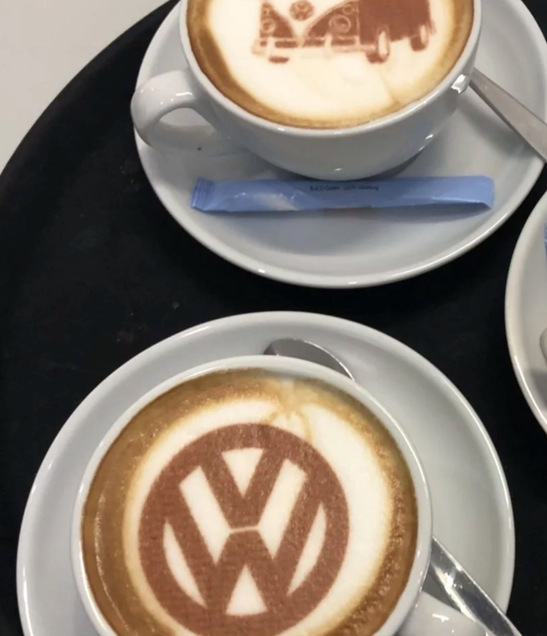 Milchschaumdrucker: Firmenlogo, Eventbotschaft, Erinnerung direkt auf das Getränk drucken, vorden Augen Ihrer Gäste innerhalb 7-10 Sekunden je Getränk. Der Druckvorgang ist ein großerPublikumsmagnet samt guter Reichweite in sozialen Medien während des Events.