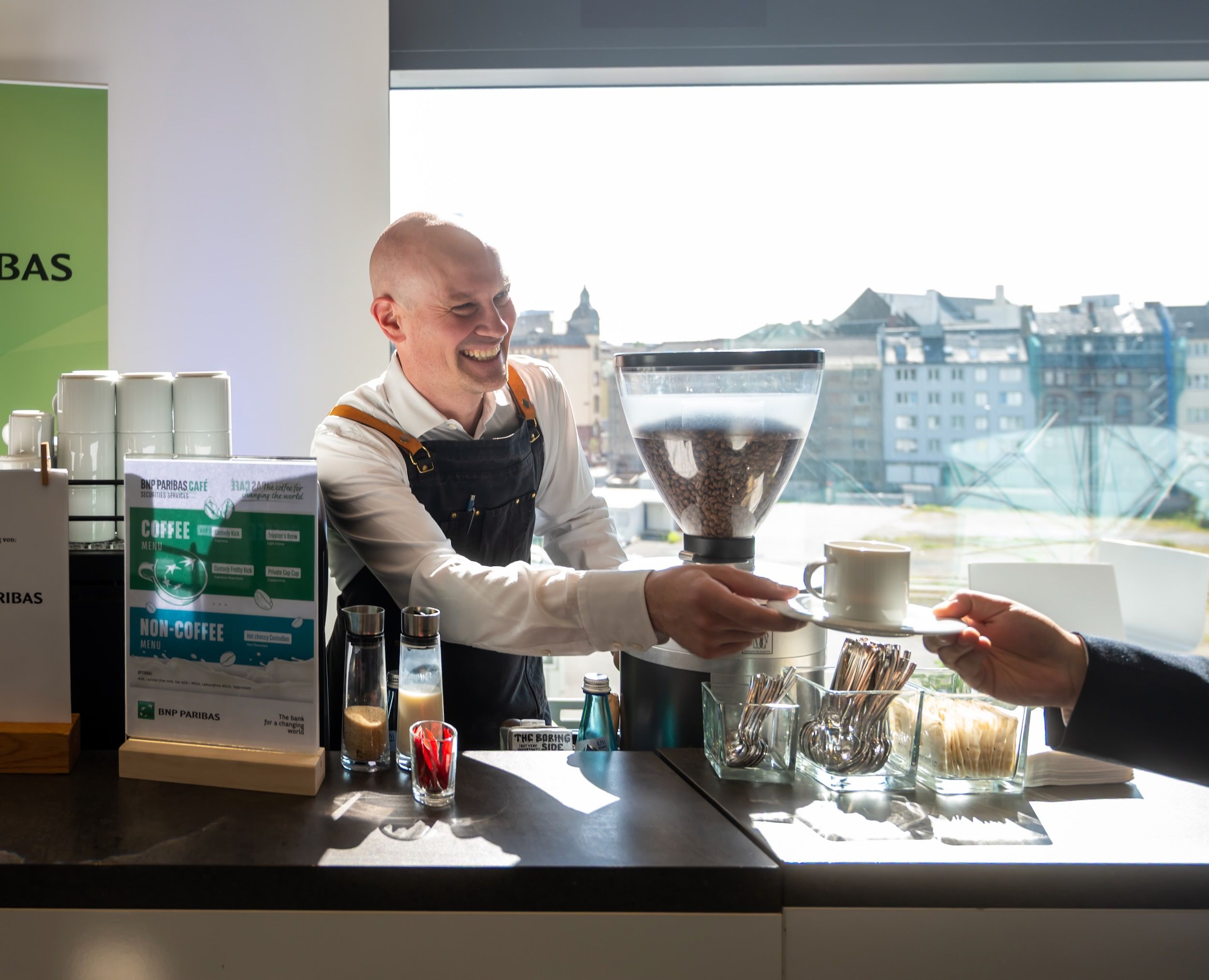 Konzentrieren Sie sich auf Ihr Geschäft und Ihre Expertise, während wir Ihren Gästen herausragenden Kaffee und erstklassigen Service in einer angenehmen Atmosphäre präsentieren, die sich nachhaltig einprägt. Unsere bezaubernden Baristi beherrschen ihr Handwerk perfekt und beeindrucken Ihre Gäste mit kunstvoller Latte Art sowie Professionalität rund um die Uhr.